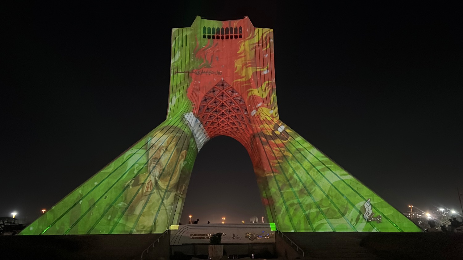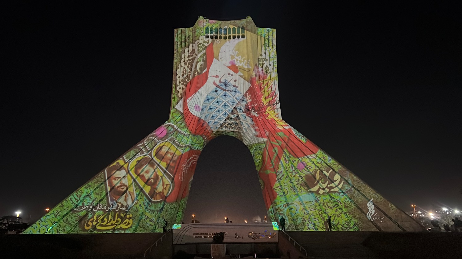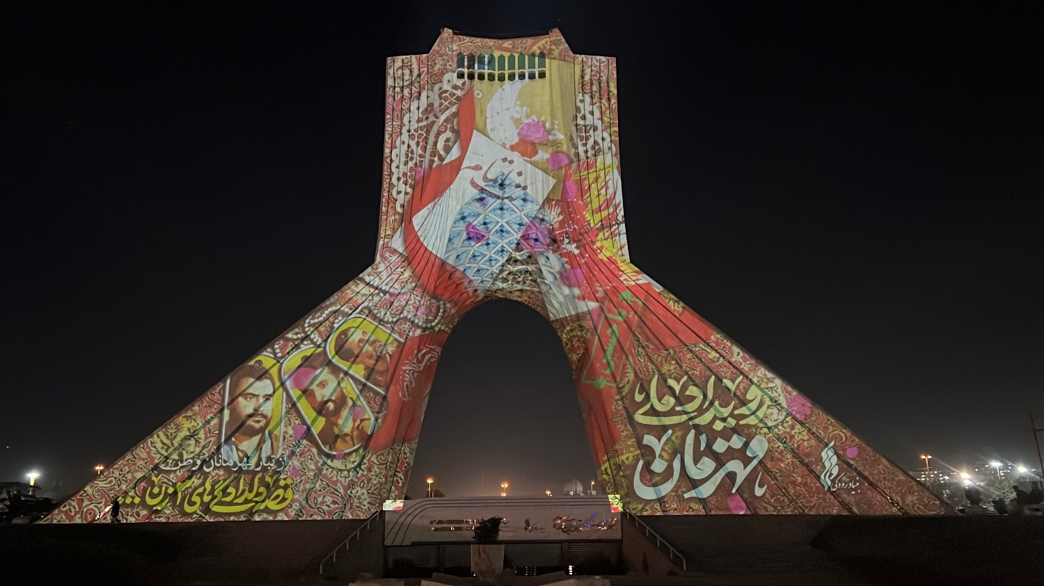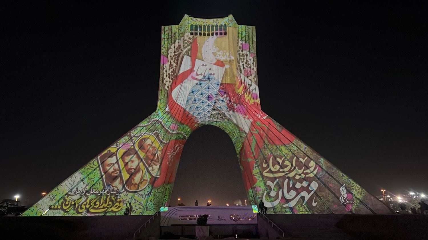 گزارش تصویری / نقش «قهرمان» بر نمای برج آزادی