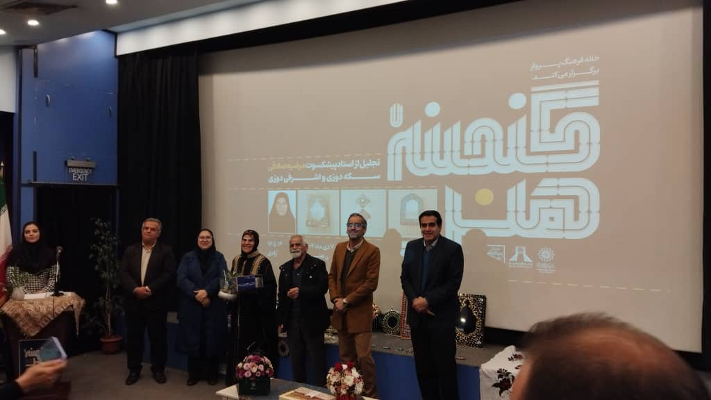 در این آیین، از سرکار خانم مرضیه صادقی، هنرمند پیشکسوت و فعال در رشتههای سکهدوزی و اشرفیدوزی، به پاس سالها تلاش و نقش موثر ایشان در حفظ، انتقال و اعتلای هنرهای سنتی ایران، تجلیل به عمل آمد.