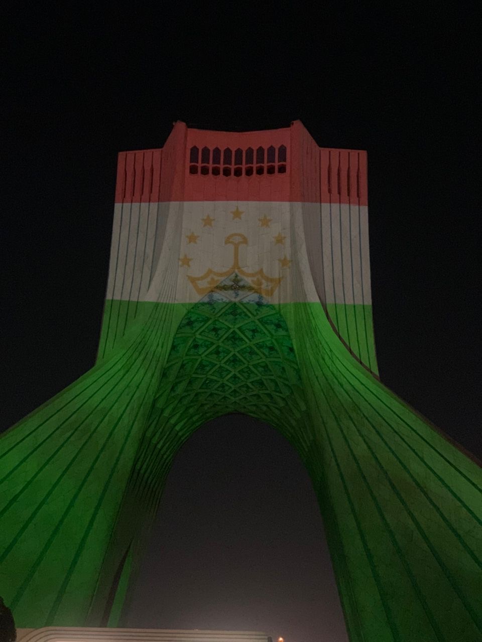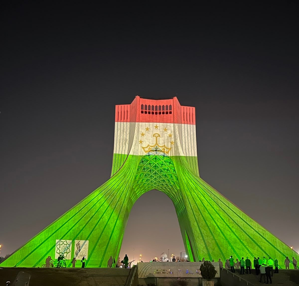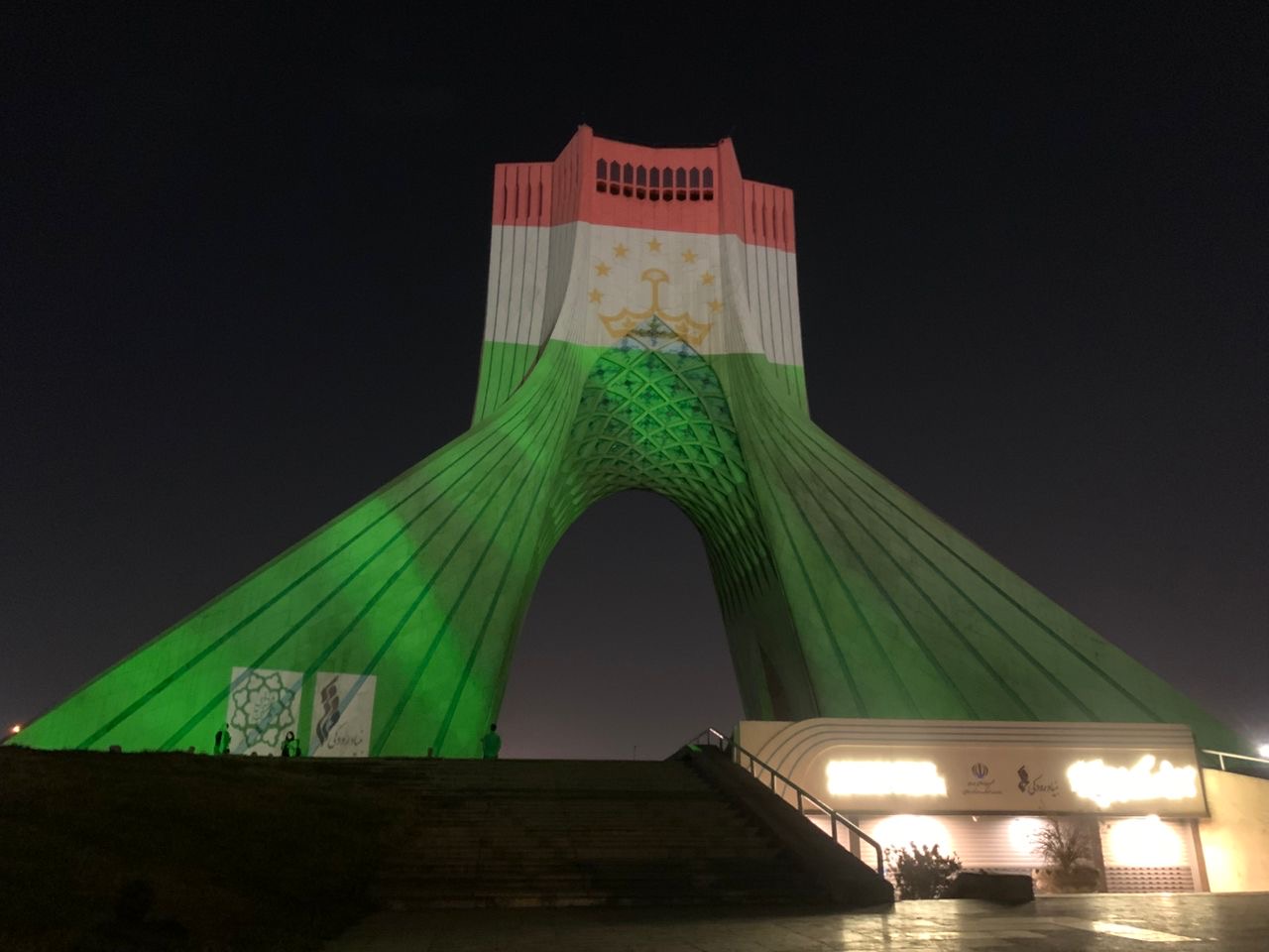 برج‌نگاره پرچم کشور تاجیکستان بر قامت برج آزادی