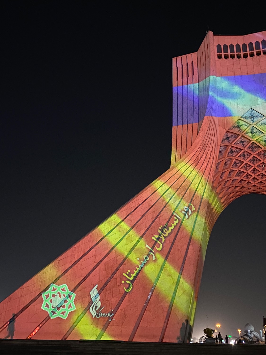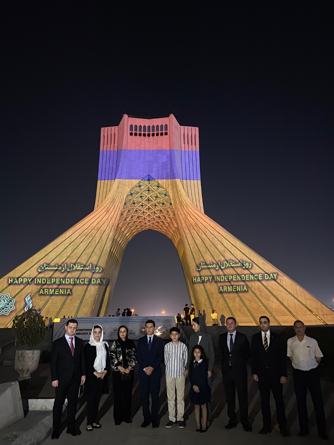 به مناسبت روز استقلال جمهوری ارمنستان، برج آزادی تهران با نورپردازی به رنگ‌های پرچم این کشور روشن شد. این برنامه با حضور گریگور هاکوبیان، سفیر ارمنستان و جمعی از دیپلمات‌های این کشور، حمیدرضا غلامزاده معاون امور بین‌الملل شهرداری تهران در مجموعه فرهنگی هنری برج آزادی برگزار گردید.